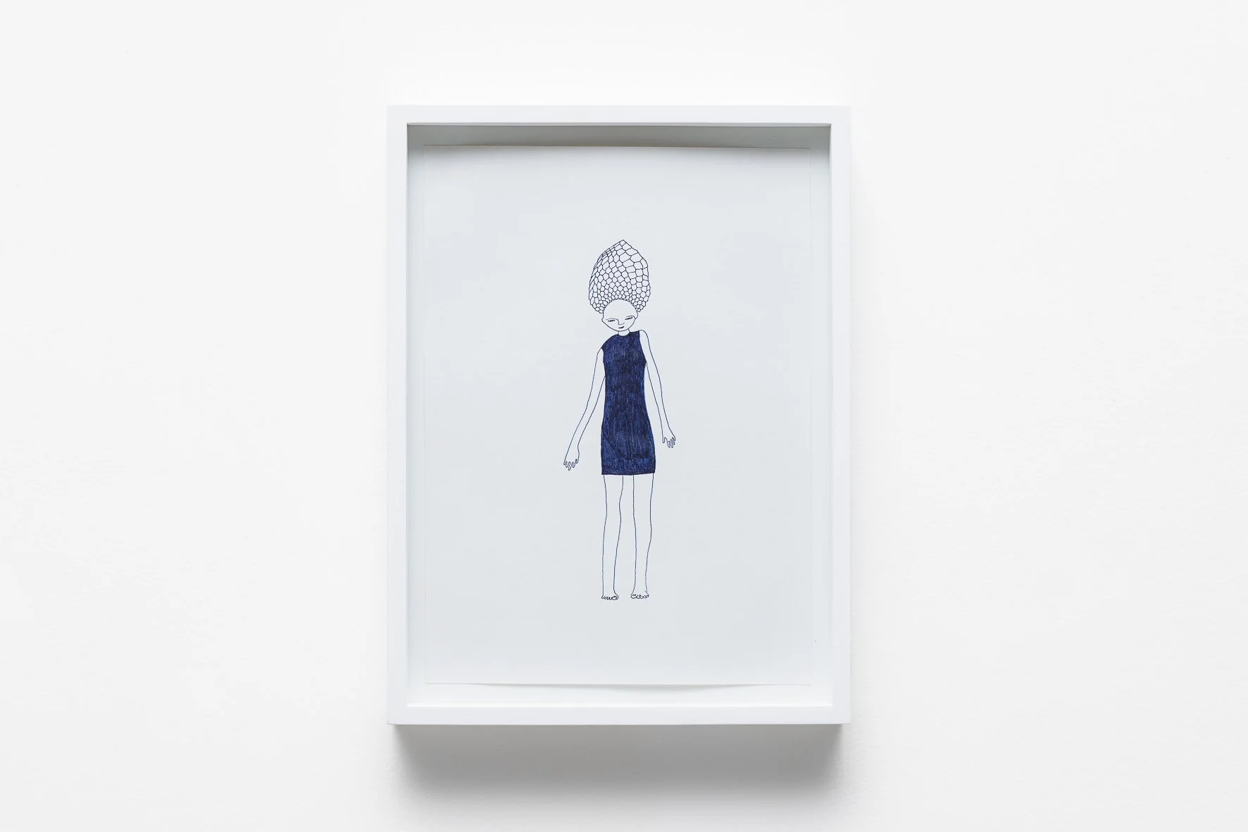 Brígida Baltar’s practice centered on the poetics of the everyday, often transforming ephemeral gestures into enduring works. This intimate drawing belongs to her Bee House series, where imagined forms blur the boundaries between human and animal, body and shelter. Using only blue ballpoint ink, Baltar conjures delicate, dreamlike imagery that reflects her lifelong interest in domestic space, nature, and the porous line between the two. Made in her Rio de Janeiro studio-home, this work embodies the artist’s quiet, conceptual inquiry into presence, transformation, and the desire to make the intangible visible.